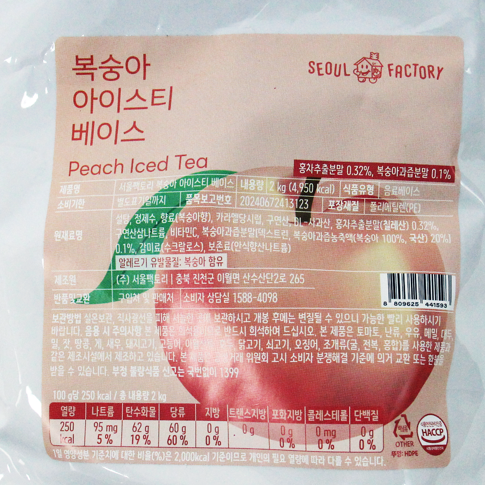 | 제품명 | 복숭아 아이스티 베이스 2kg/서울팩토리 |