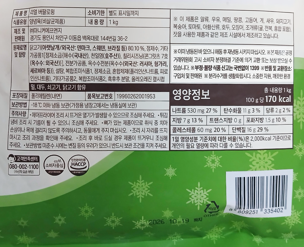 | 제품명 | 리얼 버팔로 윙 1kg/마니커 |