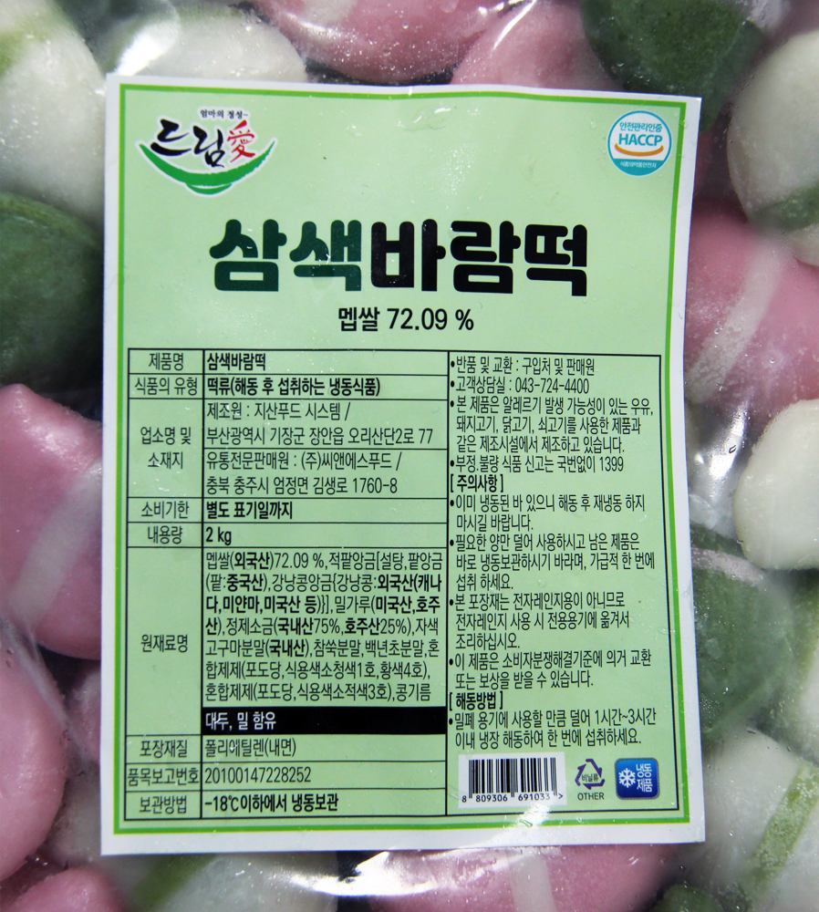 | 제품명 | 드림愛)삼색바람떡 2kg/씨앤에스푸드 |