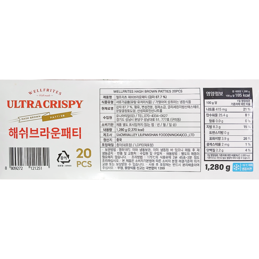 | 제품명 | 웰프리츠) 울트라크리스피 해쉬브라운 패티 1.28kg |