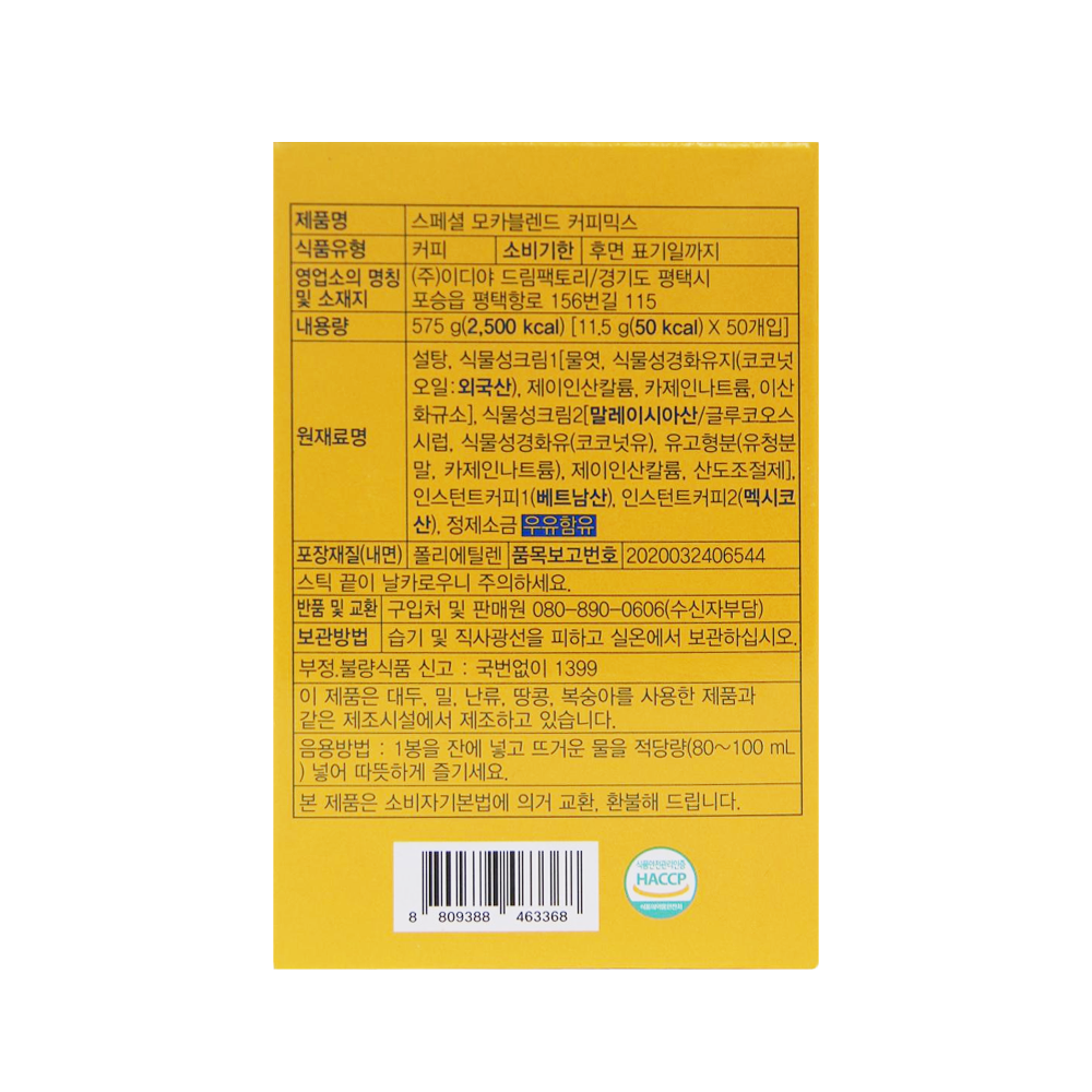 | 제품명 | 스페셜 모카블렌드 커피믹스 50T/이디야 |