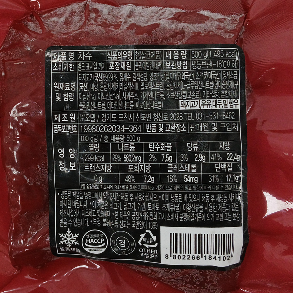 | 제품명 | 차슈 500g/오뗄 |