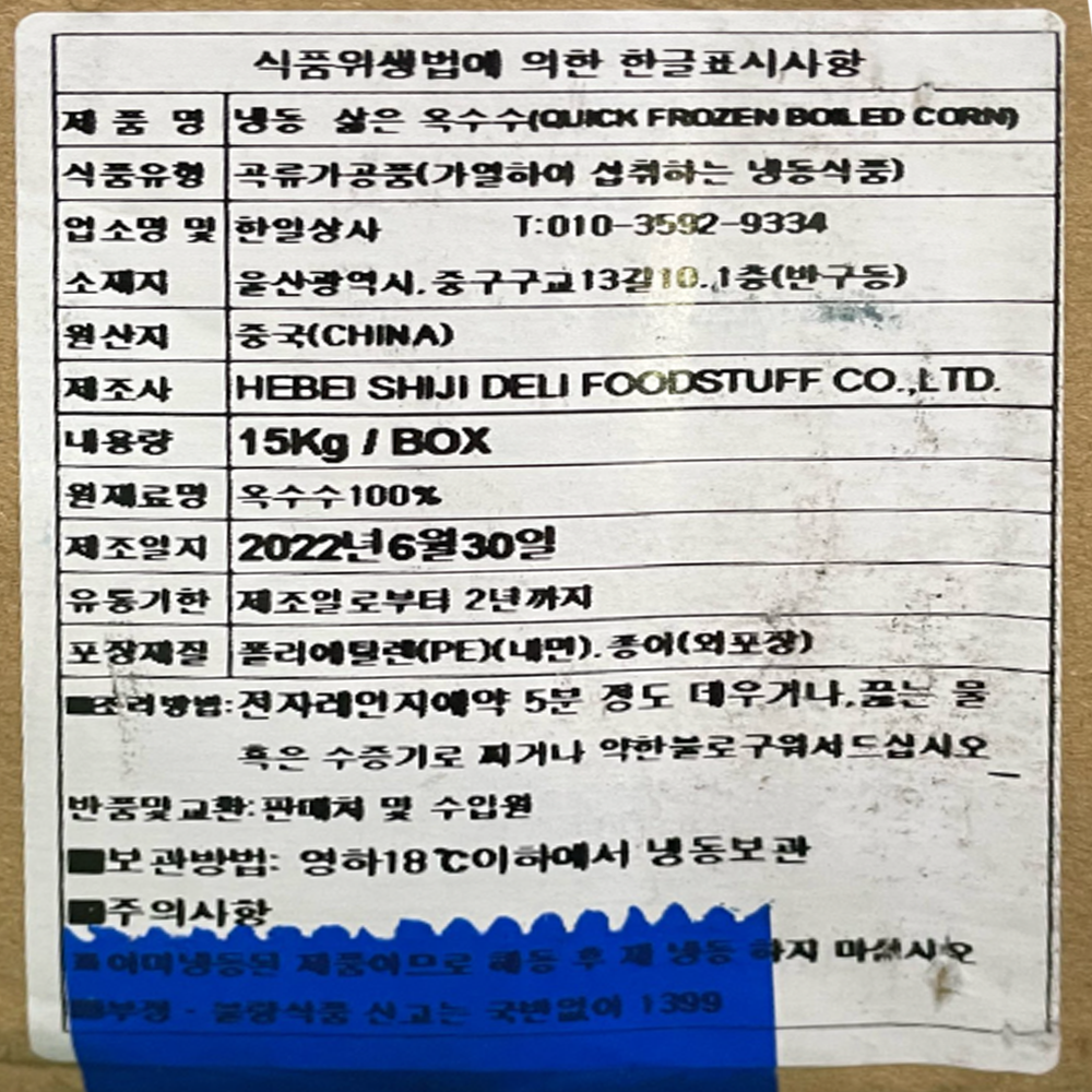 | 품목 또는 명칭 | 냉동 삶은옥수수·홍찰(60p·18-20cm)/중국산 |