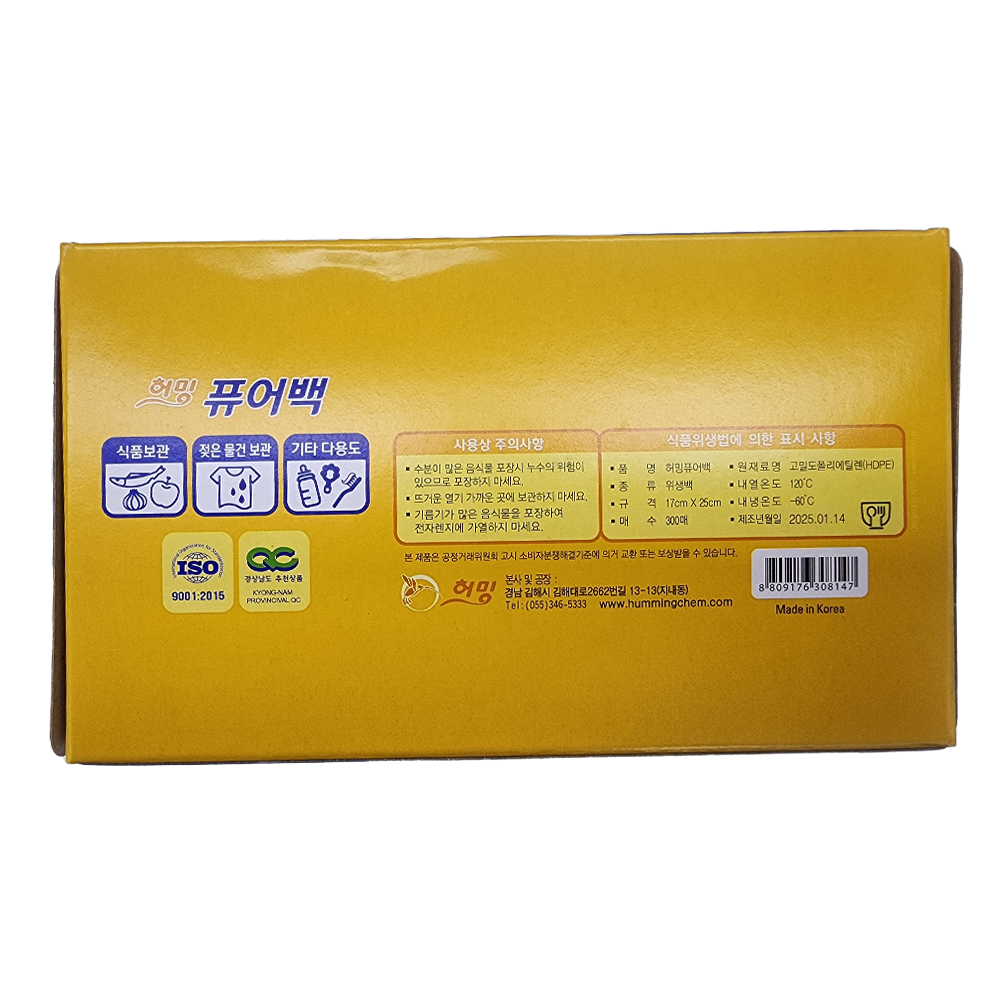 | 제품명 | 허밍) 퓨어백 17*25 (300매) /허밍 |
