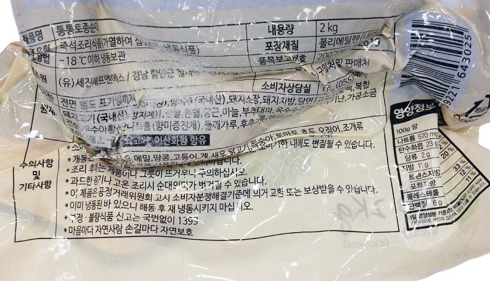 | 소비자안전을 위한 주의사항 | 보관시 주의사항:냉동 -18℃ 이하 |
