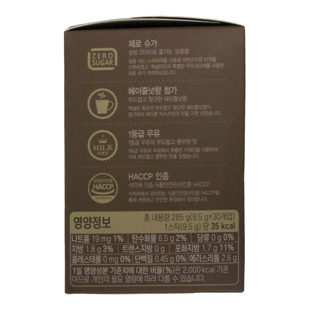 | 제품명 | 맥널티 스테비아 헤이즐넛 커피믹스 30T /한국맥널티 |