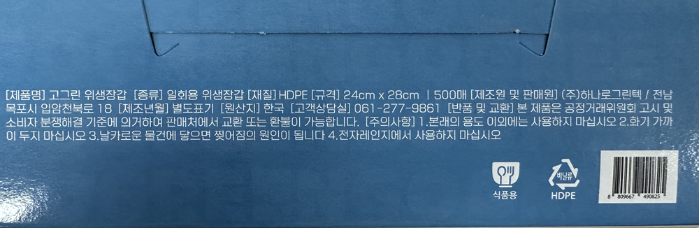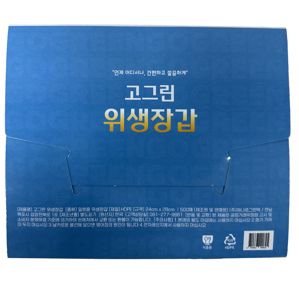 | 제품명 | 고그린 위생장갑(HDPE) 500매 /하나로그린텍 |