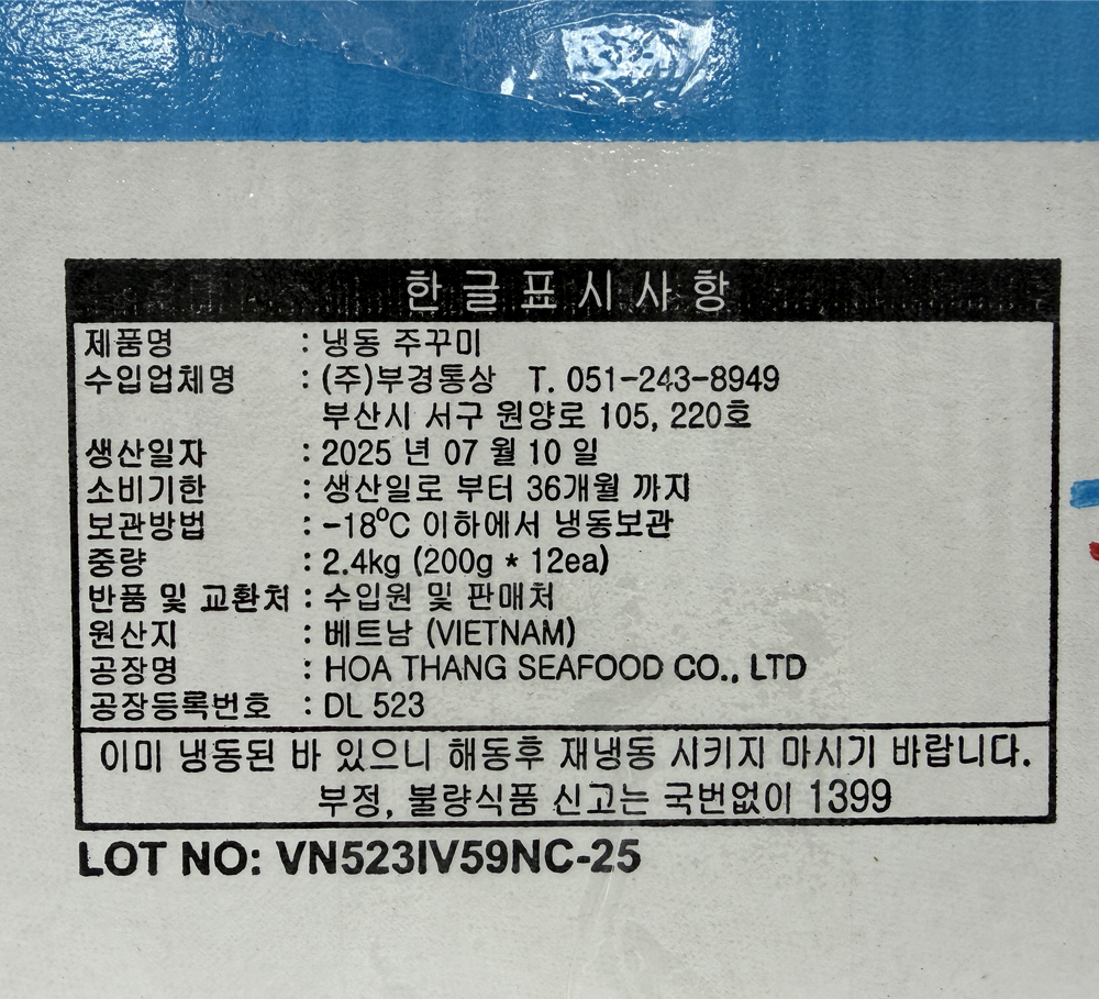 | 품목 또는 명칭 | 정성모은 쭈꾸미 6미 (80/100) 200g/부경통상 |
