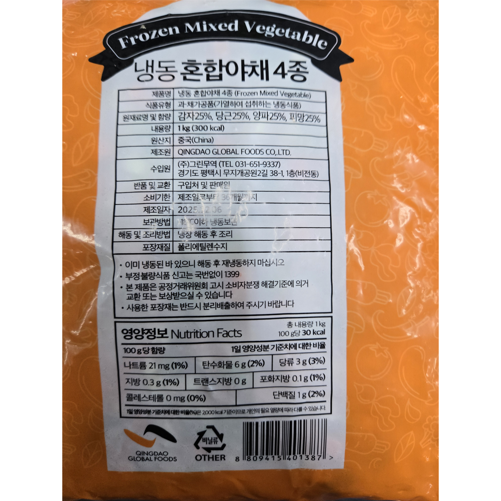 | 품목 또는 명칭 | 냉동 혼합야채 4종·1kg(감자 외)/중국산 |