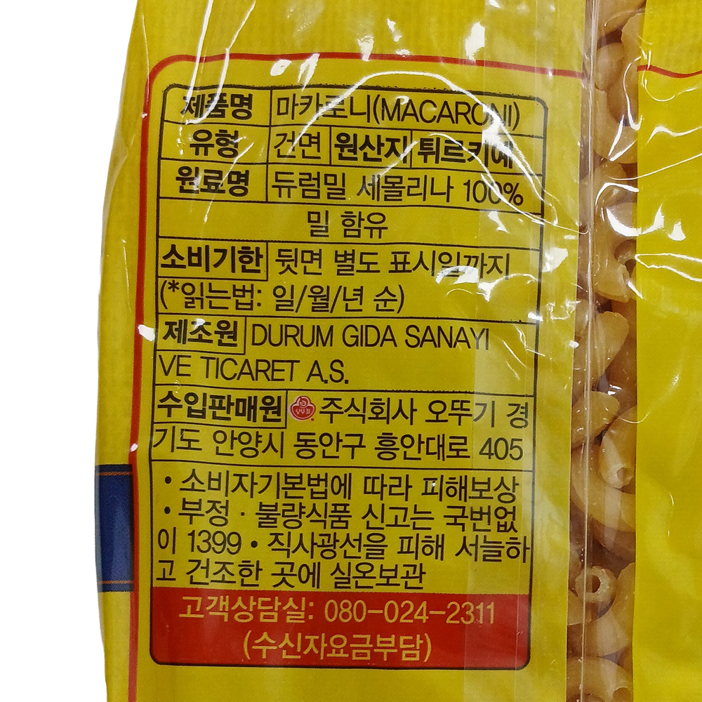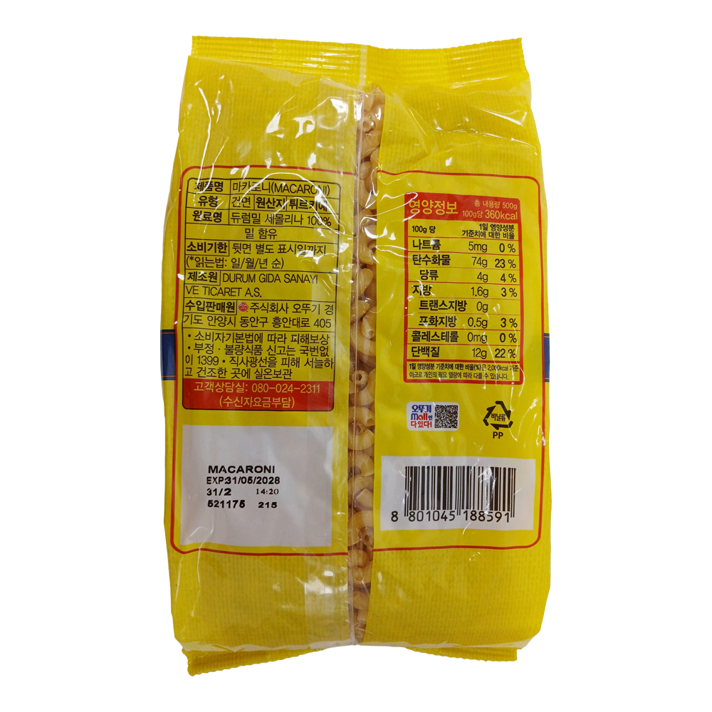 | 제품명 | 마카로니[튀르키에] 500g/오뚜기 |