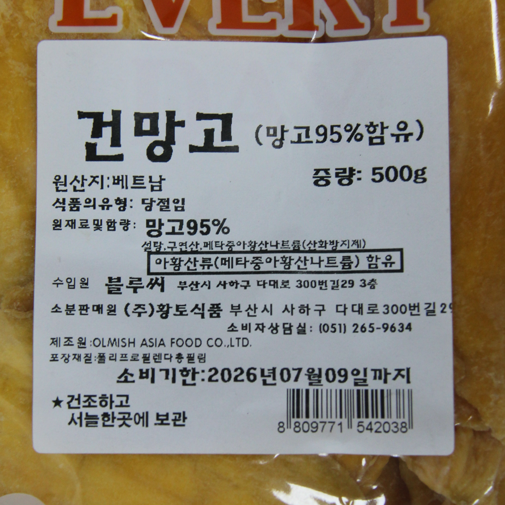 | 원재료명 및 함량(농수산물의 원산지 표시에 관한 법률에 따른 원산지 표시 포함) | 망고95% |