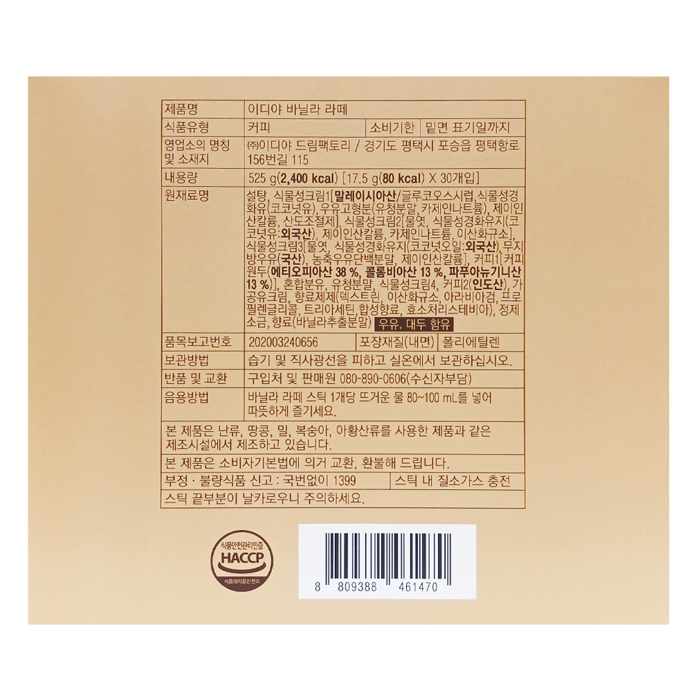 | 제품명 | 바닐라 라떼 30T/이디야 |