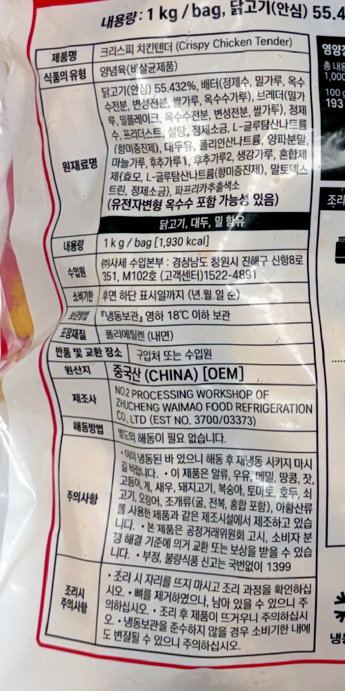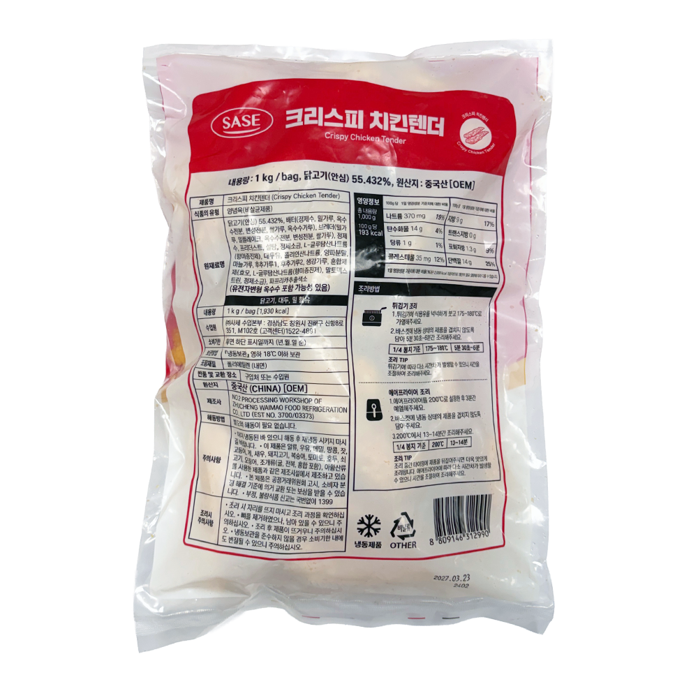 | 제품명 | 크리스피 치킨텐더 1kg/사세 |