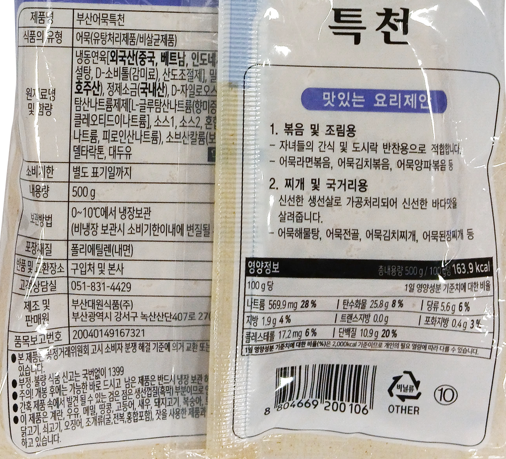 | 제품명 | 부산어묵특천(사각) 500g/대원식품 |