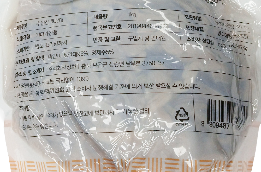 | 품목 또는 명칭 | 데침 토란줄기·1kg(미얀마산)/정화 |