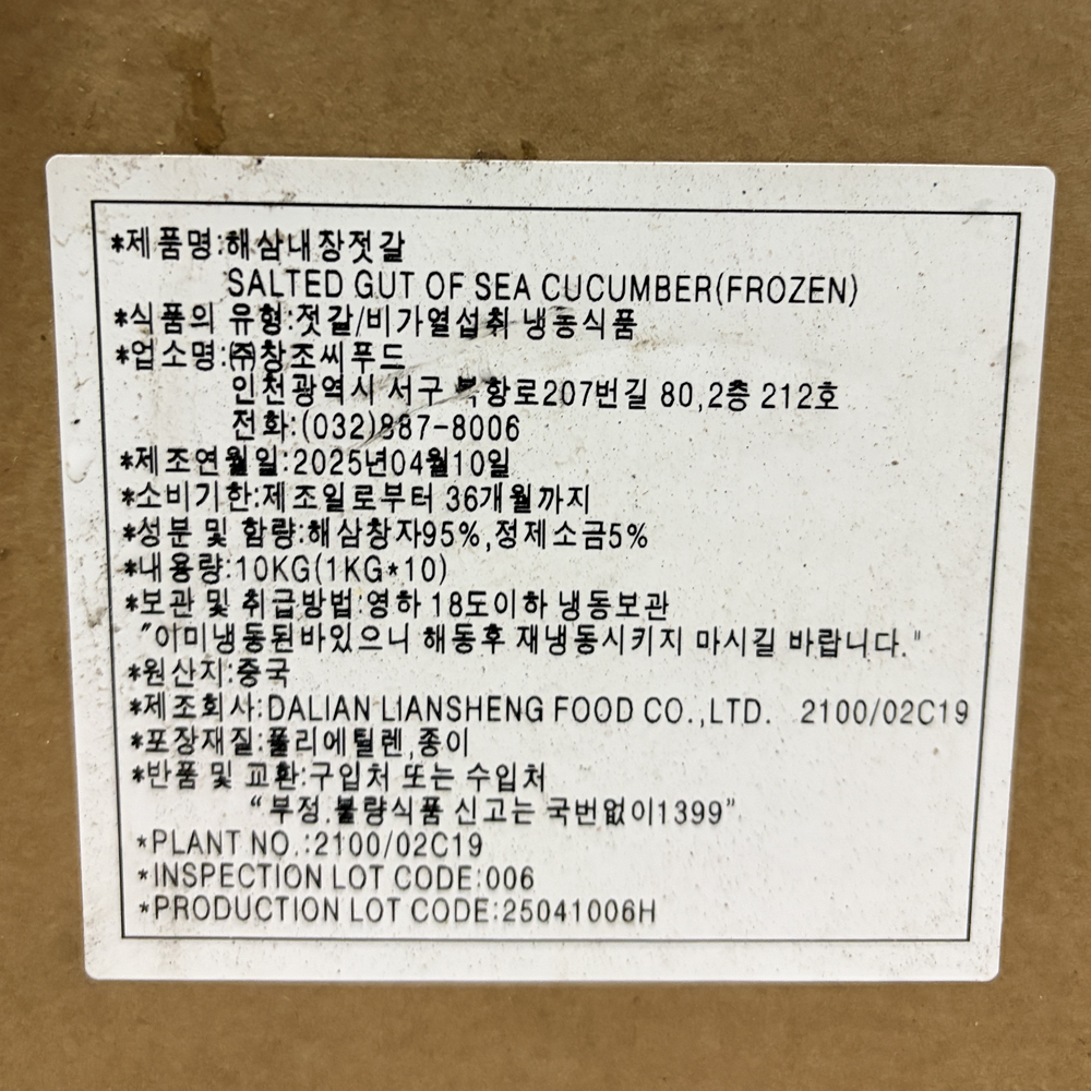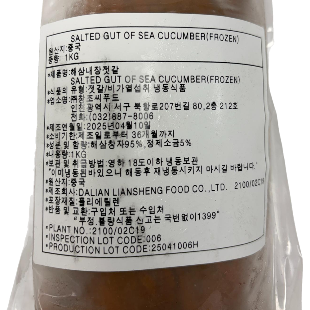 | 품목 또는 명칭 | 냉동 해삼내장젓갈(고노와다) 1kg /중국산 |