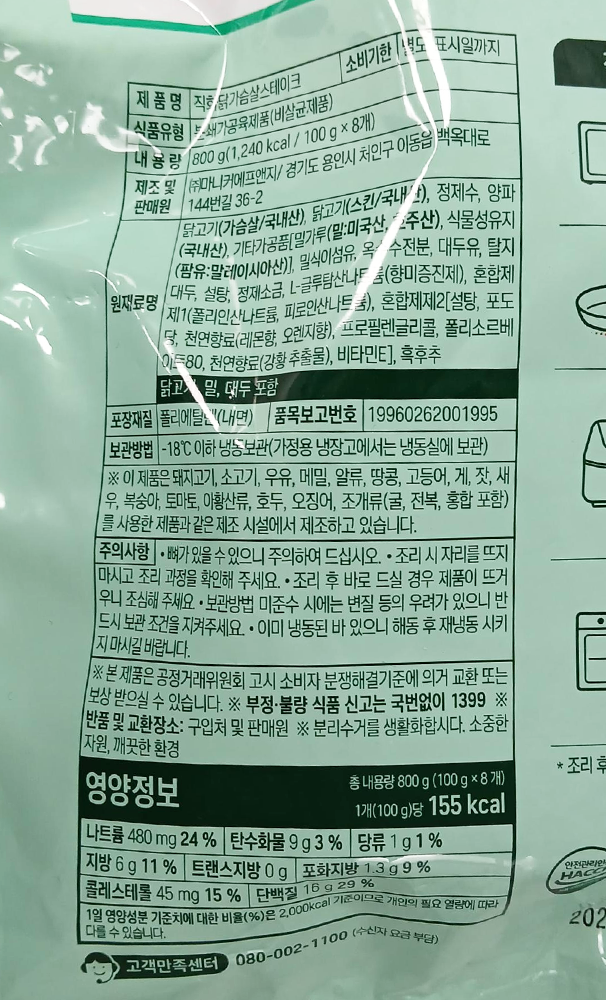 | 제품명 | 직화닭가슴살스테이크(800g)/마니커 |