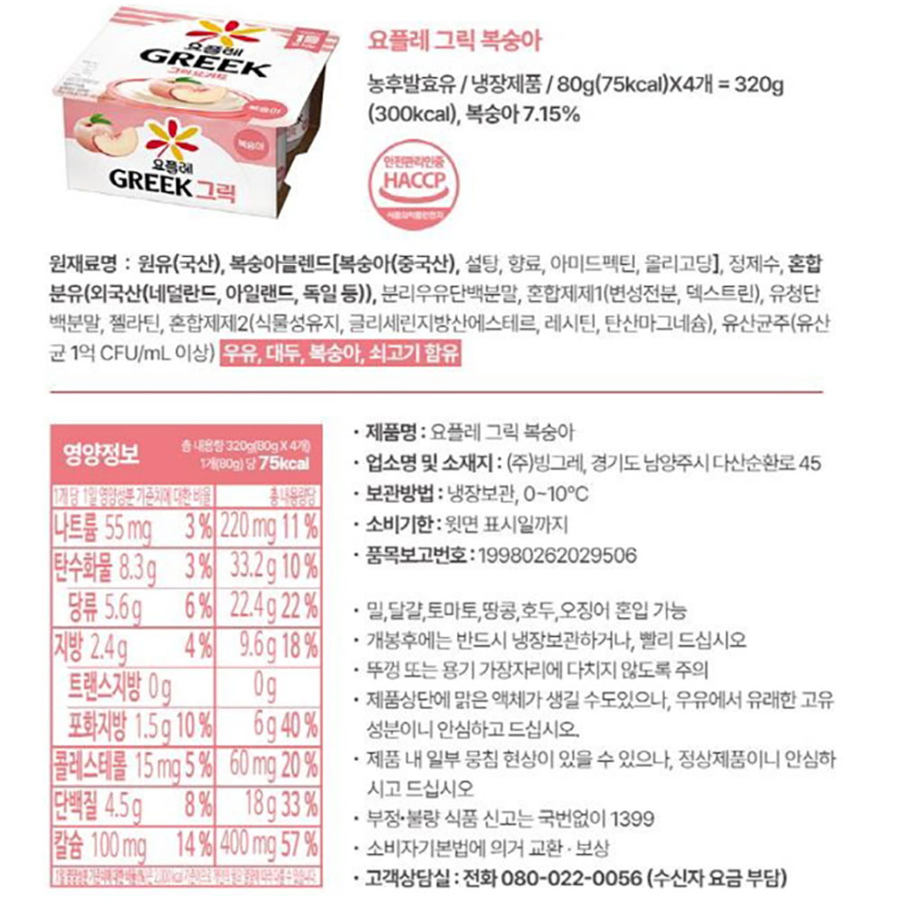 | 제품명 | 빙그레)요플레그릭 복숭아 4개 |