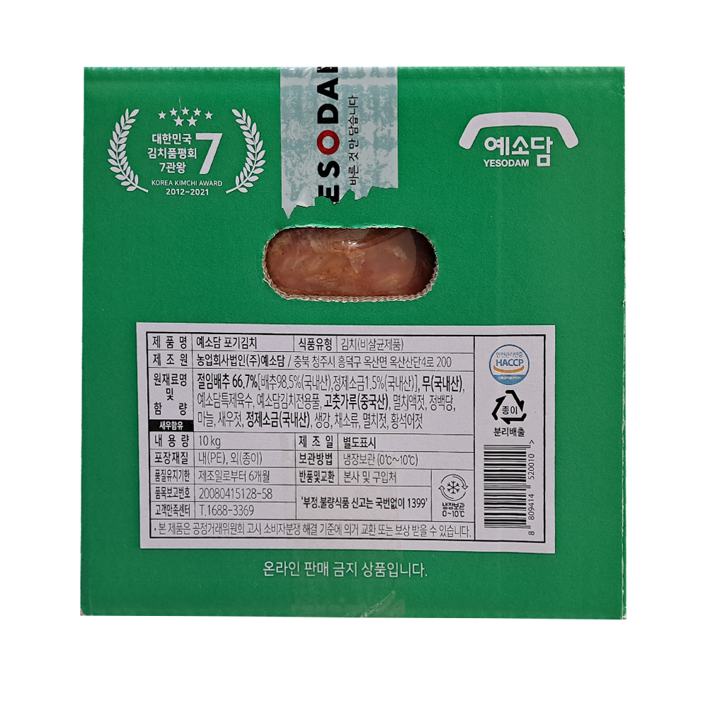 | 제품명 | 예소담) 포기배추김치 10kg/예소담 |