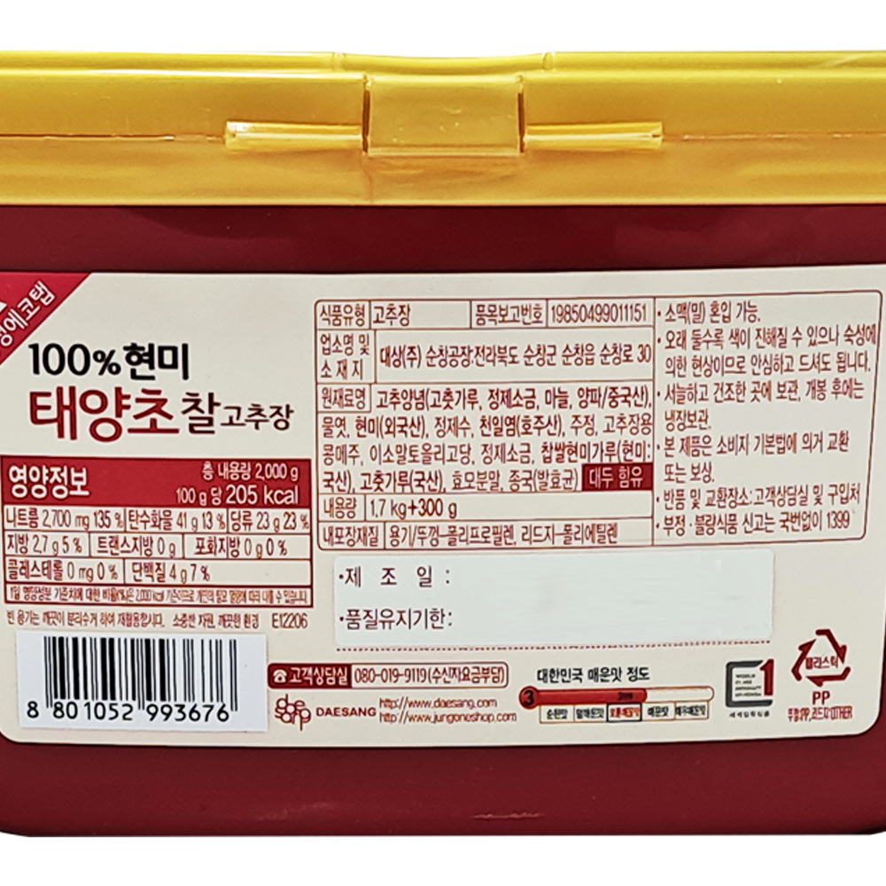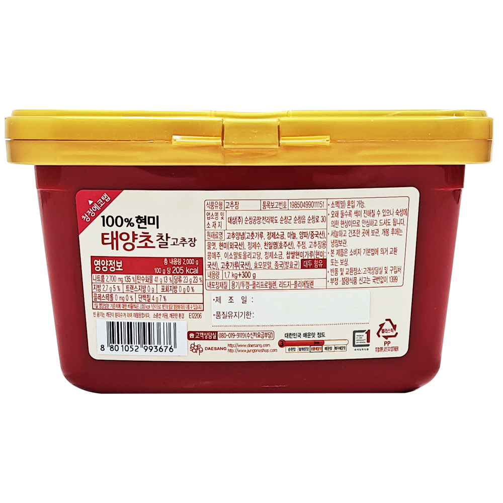 | 제품명 | 순창 현미태양초찰고추장 1.7kg(+300g)/대상 |