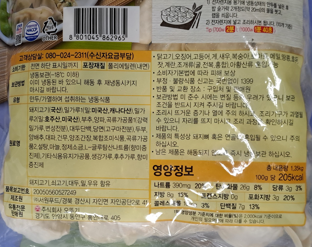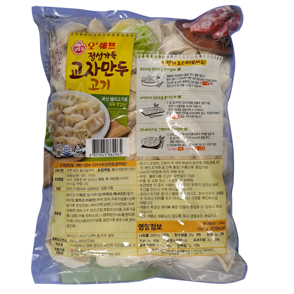 | 제품명 | 오쉐프 정성가득 교자만두고기 1.35kg/오뚜기 |