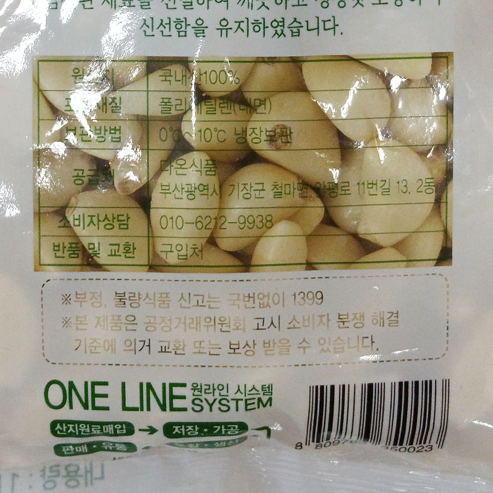 | 품목 또는 명칭 | 깐마늘(중)·1kg(국내산)/다온식품 |